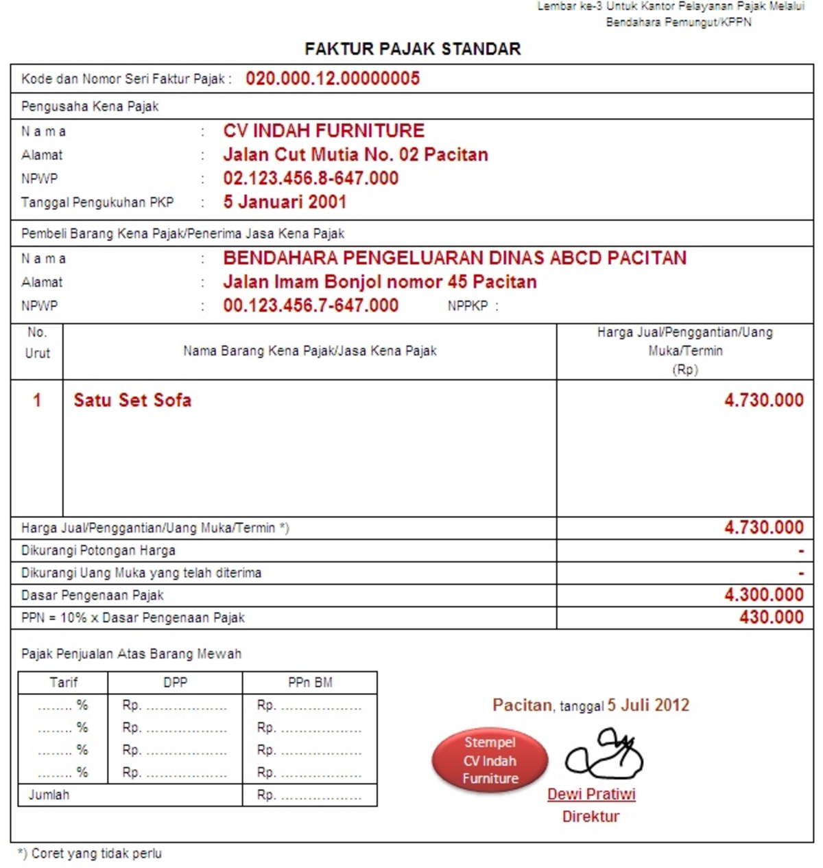 Contoh Faktur Pajak Cv Rasmi Q