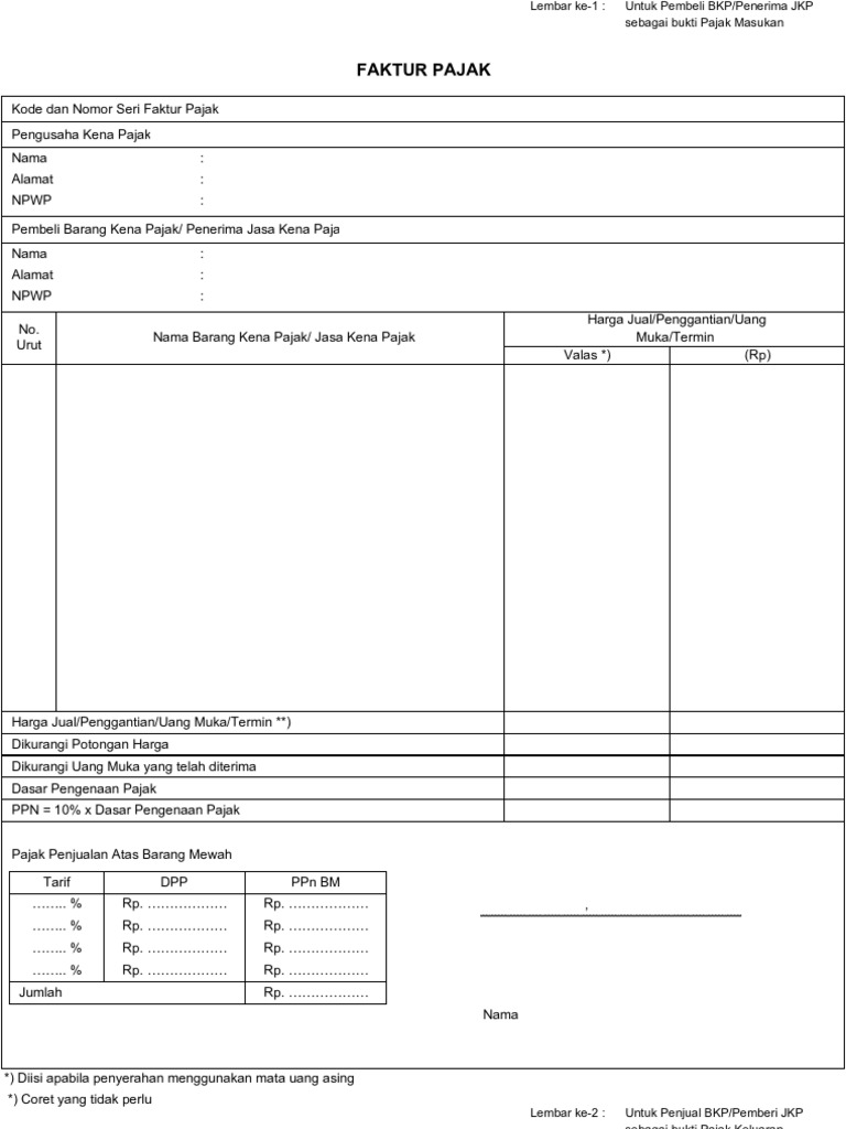 Faktur Pajak Pengertian Jenis Fungsi Contohnya
