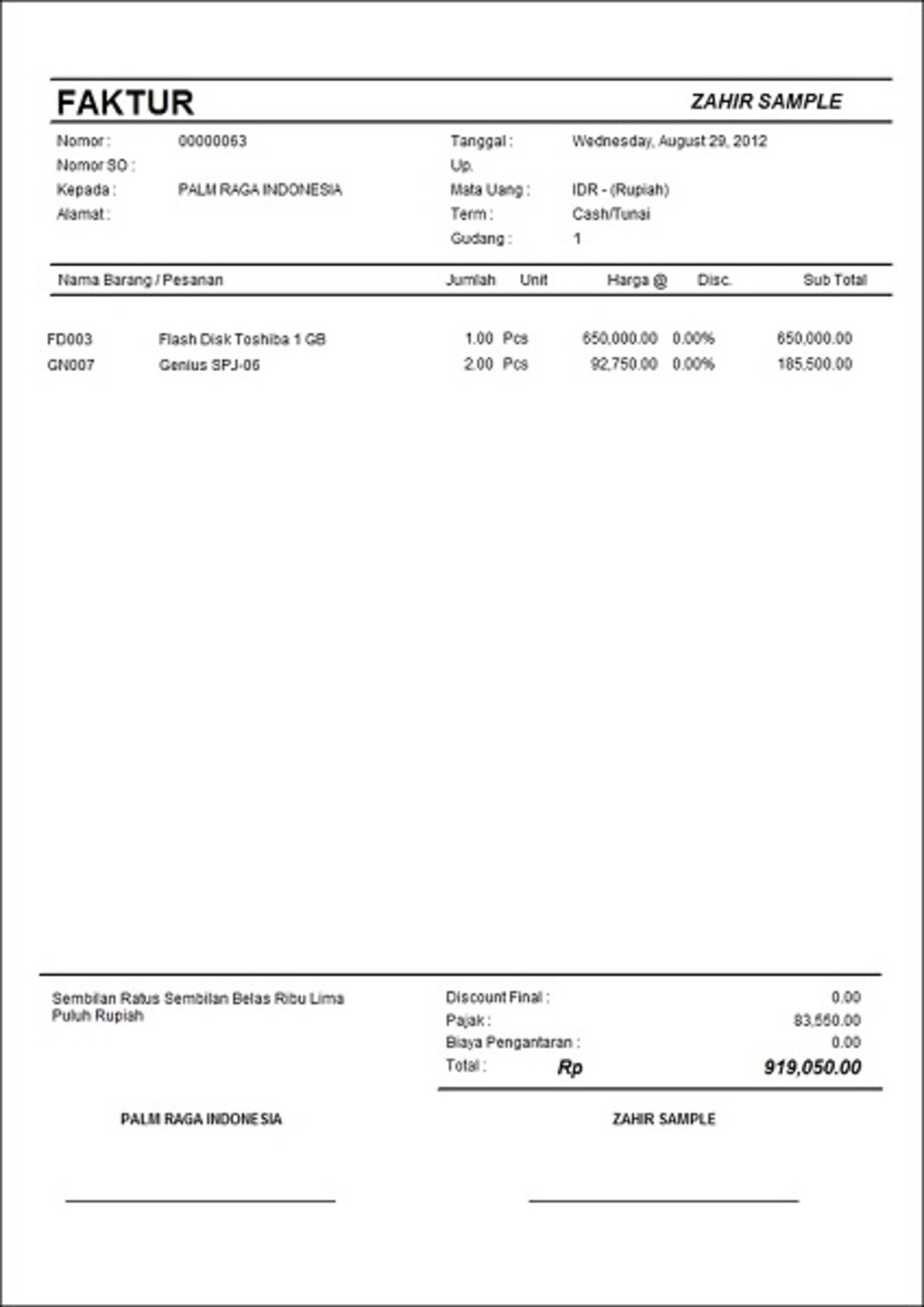 Contoh Faktur Software Akuntansi Terbaik Zahir Accounting