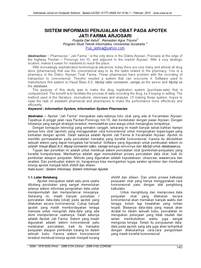Pdf Aplikasi Sistem Informasi Penjualan Obat Di Apotek