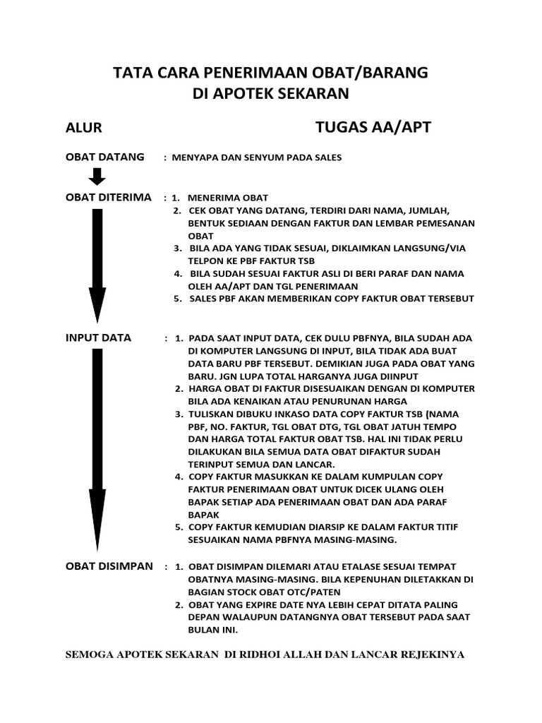 Mencocokkan faktur dengan obat yang dating melliputi jenis dan jumlah serta no batch sediaan c. Apotek dilarang membeli atau menerima bahan baku obat selain dari pbf penyalur bahan baku obat pt. Memberi harga pada resep yang baru masuk.