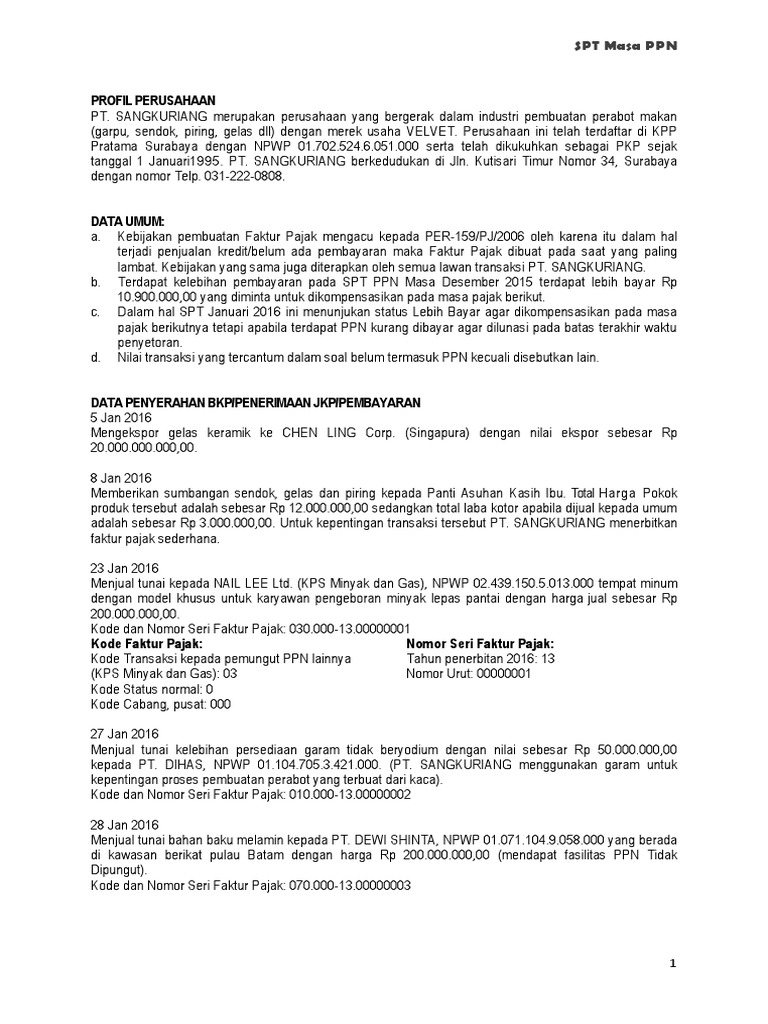 Contoh Soal Dan Pengisian Spt Ppn 1111