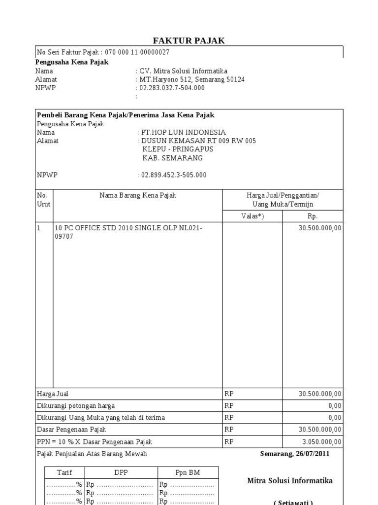 Contoh Faktur Pajak Keluaran Kode 070 Archives Gawe Cv