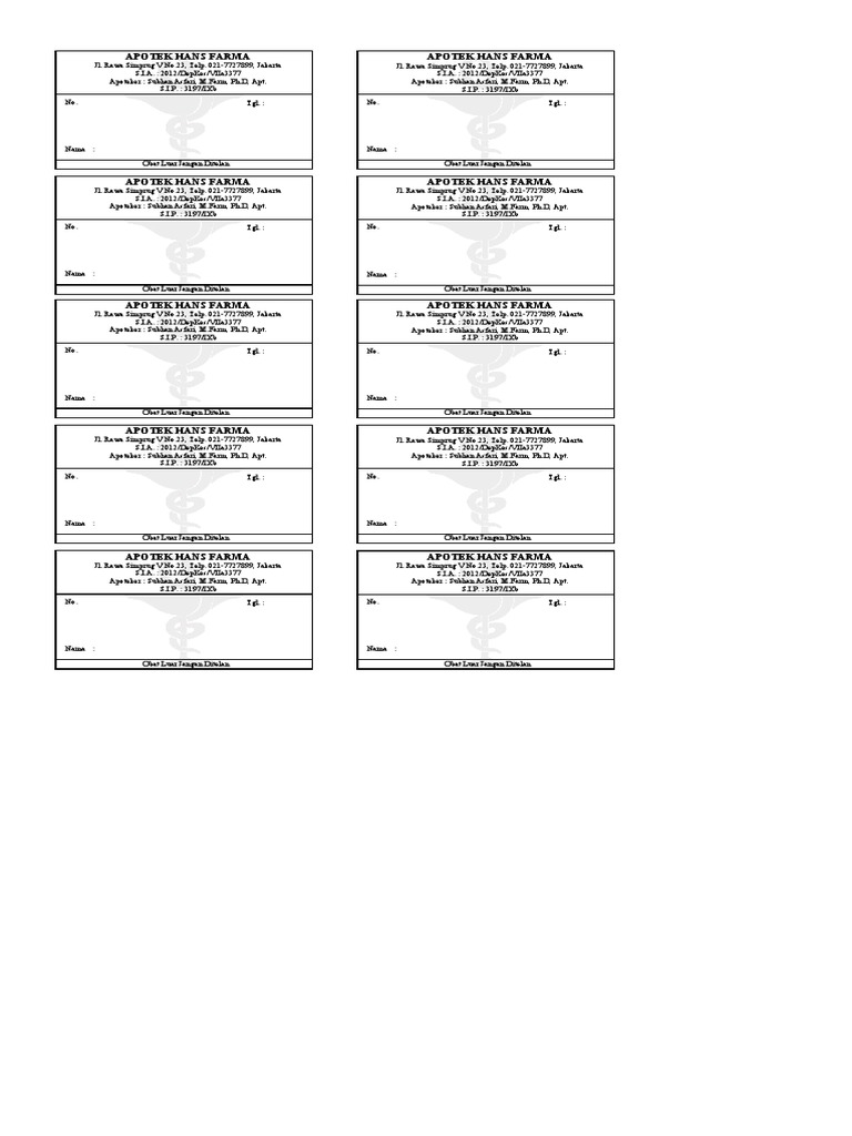 Contoh Etiket Obat Luar Dan Dalam