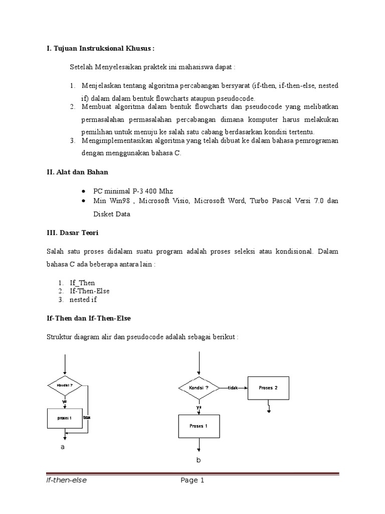 Contoh Flowchart Percabangan If If Else Dan Nested If Pada
